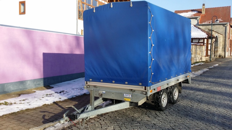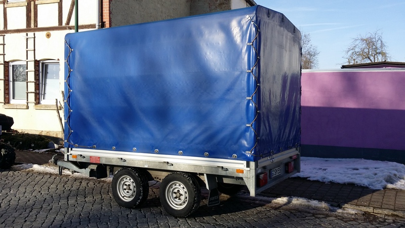 Kastenanhänger 2000 KG 3,08 x 1,70 cm Ladefläche mit abnehmbarem Planengestell 180cm hoch.