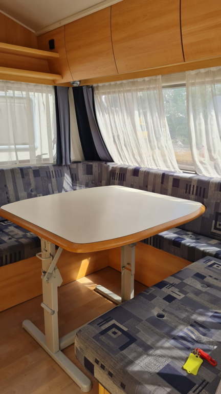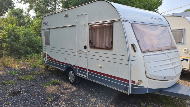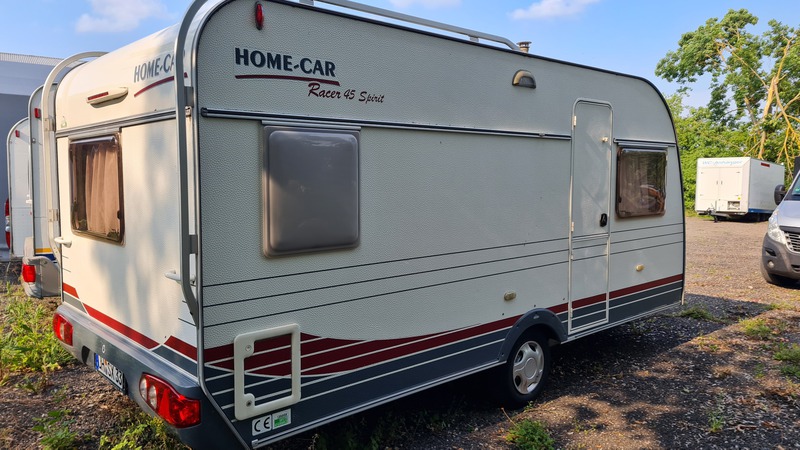Zur Vermietung steht der Wohnwagen HomeCar Racer 45inkl. Warmwasser Boiler, Kühlschrank und Heizung.